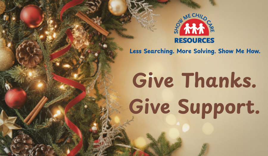 Give thanks. Give support. Gift Show Me Child Care Resources.